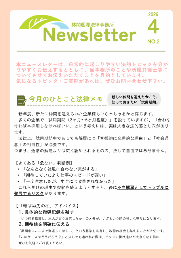 2026年4月号ニュースレターのお知らせ